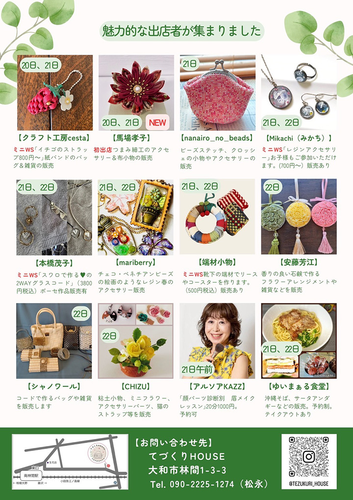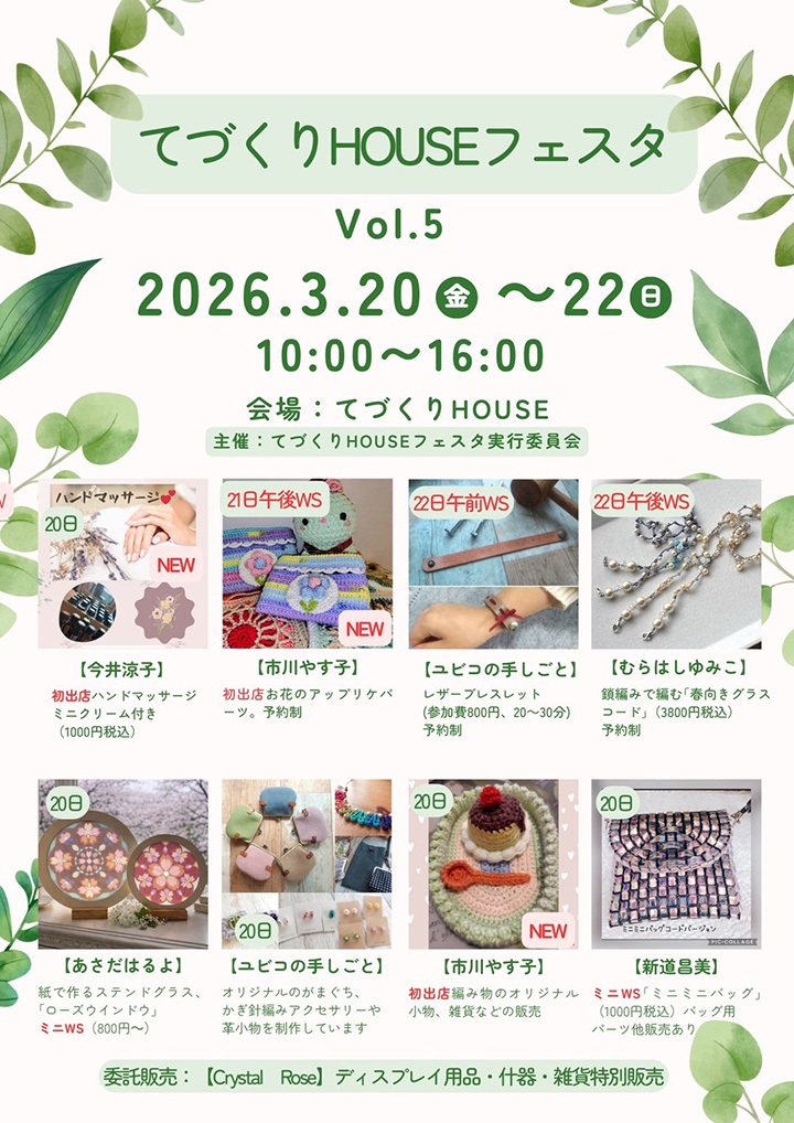 松永美佐子が運営する「てづくりHOUSE」で、「冬のクリスマス・ハンドメイド」 に続いて春のイベント「てづくりHOUSEフェスタ」が開催されます!