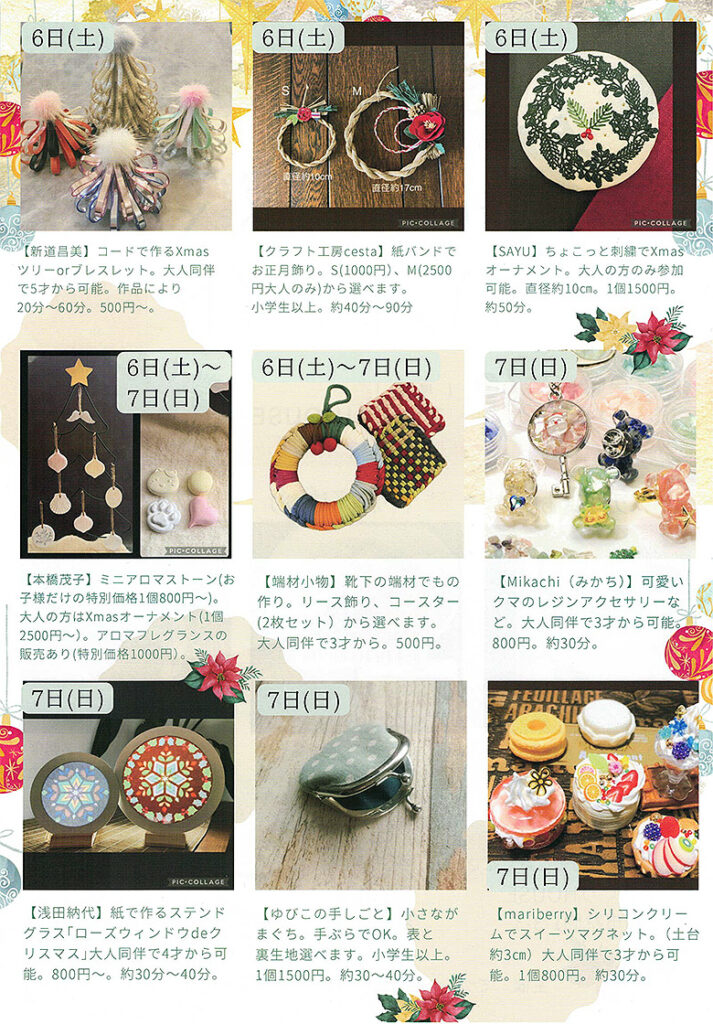 手づくりもグルメもお買い物も、クリスマスお楽しみイベント!!